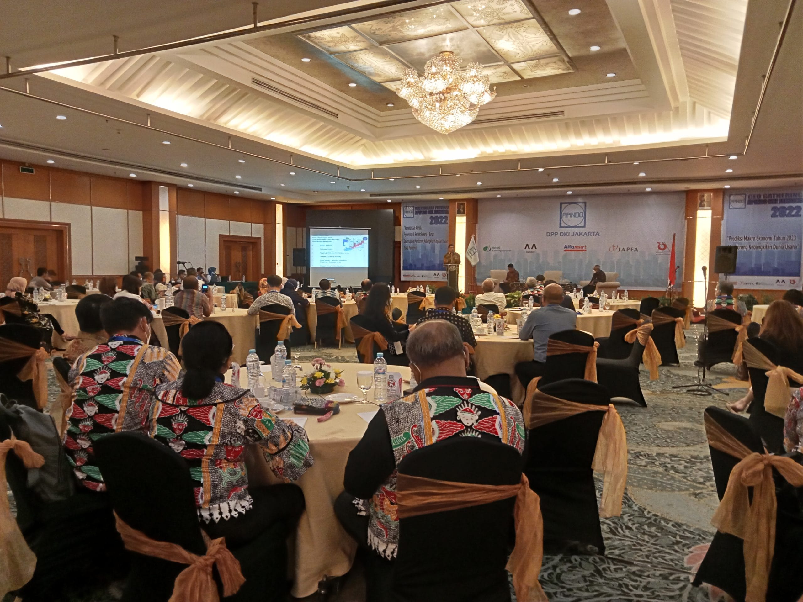 Musyrawah Dewan Pimpinan Provinsi APINDO DKI Jakarta merupakan agenda runtin 5 tahunan untuk memilih dan menetapkan kembali Kepengurusan priode selanjutnya. Musprov DPP APINDO DKI Jakarta untuk tahun 2022 dilaksanakan pada 21 November 2022 bertempat di Hotel Grand SAHID Hotel Jakarta. Peserta dalam MUSPROV ini dihadiri oleh semua Pengurus DPK APINDO di Wilayah Provinsi DKI Jakarta, termasuk DPK APINDO JAKARTA TIMUR mengirimkan Peserta dalam Musywarah tersebut. Kegiatan Musprov DPP APINDO DKI Jakarta 2022 dihadiri oleh Deputi Gubernur DKI Jakarta Bidang Ekonmi , selain Musprov bersama dengan ini juga dilaksanakan CEO Gathering di pagi hari ini dengan mengundang Permerhati ekonomi dari Universitas Indonesia Bapak Prof Dr Roy Sambel dan Kepala Kanwil BPJS Ketenagakerjaan Wilyah DKI Jakarta yang memberikan pandangan tentang perekonomian di tahun 2023. Selain yang hadir dari anggota Apindo se DKI Jakarta , kegiatan ini dihadiri oleh Wakil Ketua DPN APINDO Ibu Shinta Kamdani dan Sekretaris Jenderal Bapak Edy Husi . Ibu Shinta mewakili Ketua Umum APINDO Bapak Haryadi Sukamdani menyampaikan sambutannya , bahwa pada pronsipnya mengajak kepada Peserta Musprov untuk menjalankan amanat AD/ART APINDO dengan baik , dengan memilih Ketua DPP APINDO DKI Jakarta sesuai dengan hati nurati masing masing secara demokratis.( Editor HJTEA)