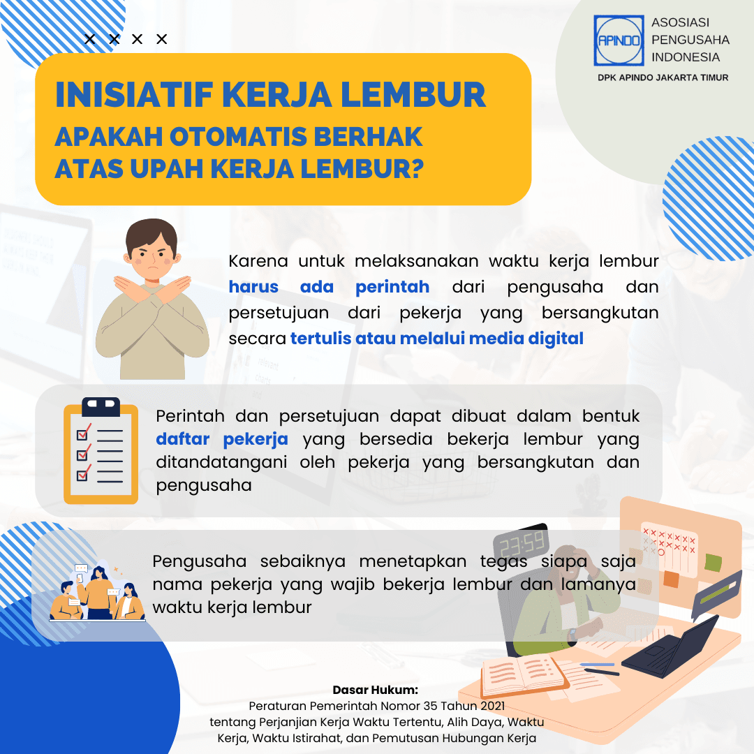 Penting untuk dipahami bagi pekerja dan pengusaha, bahwa pelaksanaan waktu kerja lembur harus berdasarkan perintah pengusaha dan juga atas persetujuan dari pekerja yang bersangkutan !👌
